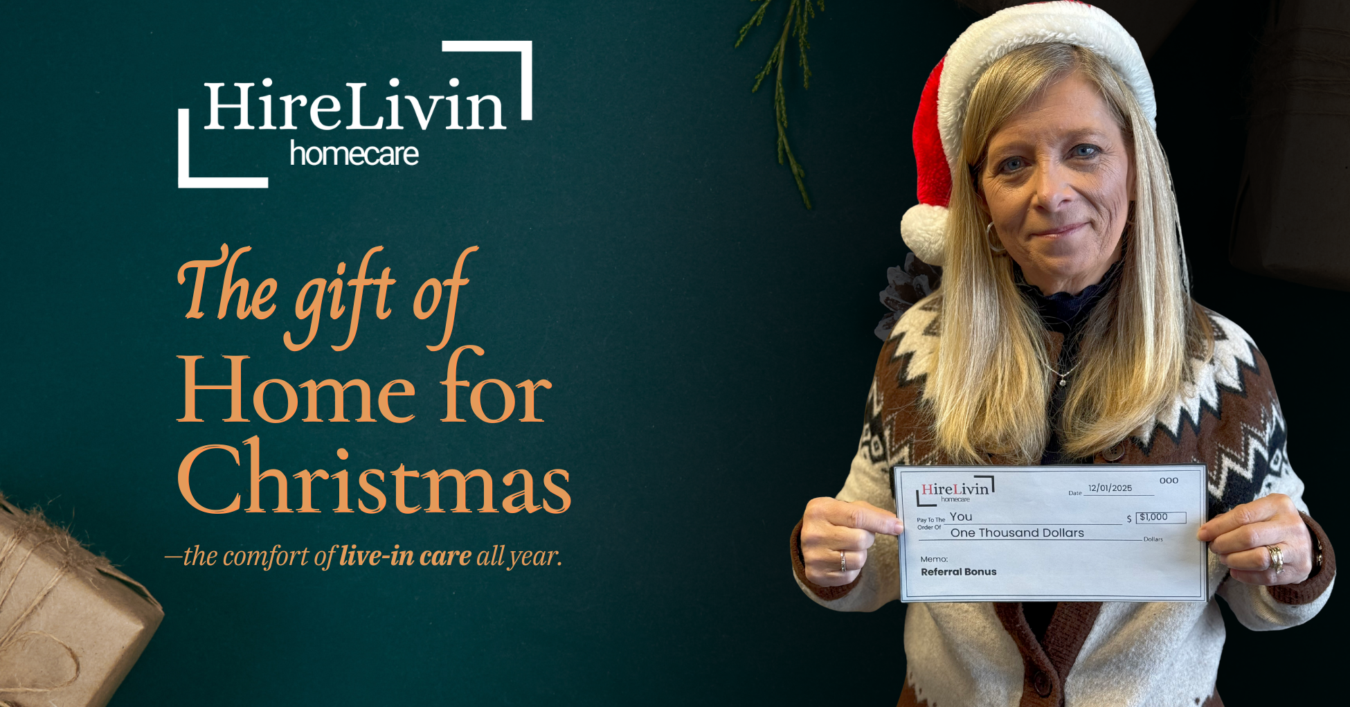 If you know a family member, friend, or loved one who could benefit from the comfort of live-in care, we’d love to help. When someone you refer begins live-in service with us and completes their first full month, you’ll receive a $1,000 referral fee as our way of saying thank you. It’s a simple, meaningful way to support someone you care about and be appreciated for connecting them with dedicated, reliable care.